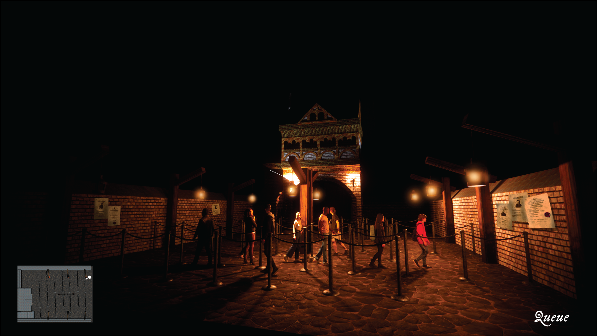 Guests enter a blood-soaked medieval village. Overturned carts and barrels hint at a hasty retreat as half-timbered facades loom overhead. Guests experience the aftermath of Snow's siege - and tension grows as they wind through alleyways and see the carnage for themselves.
